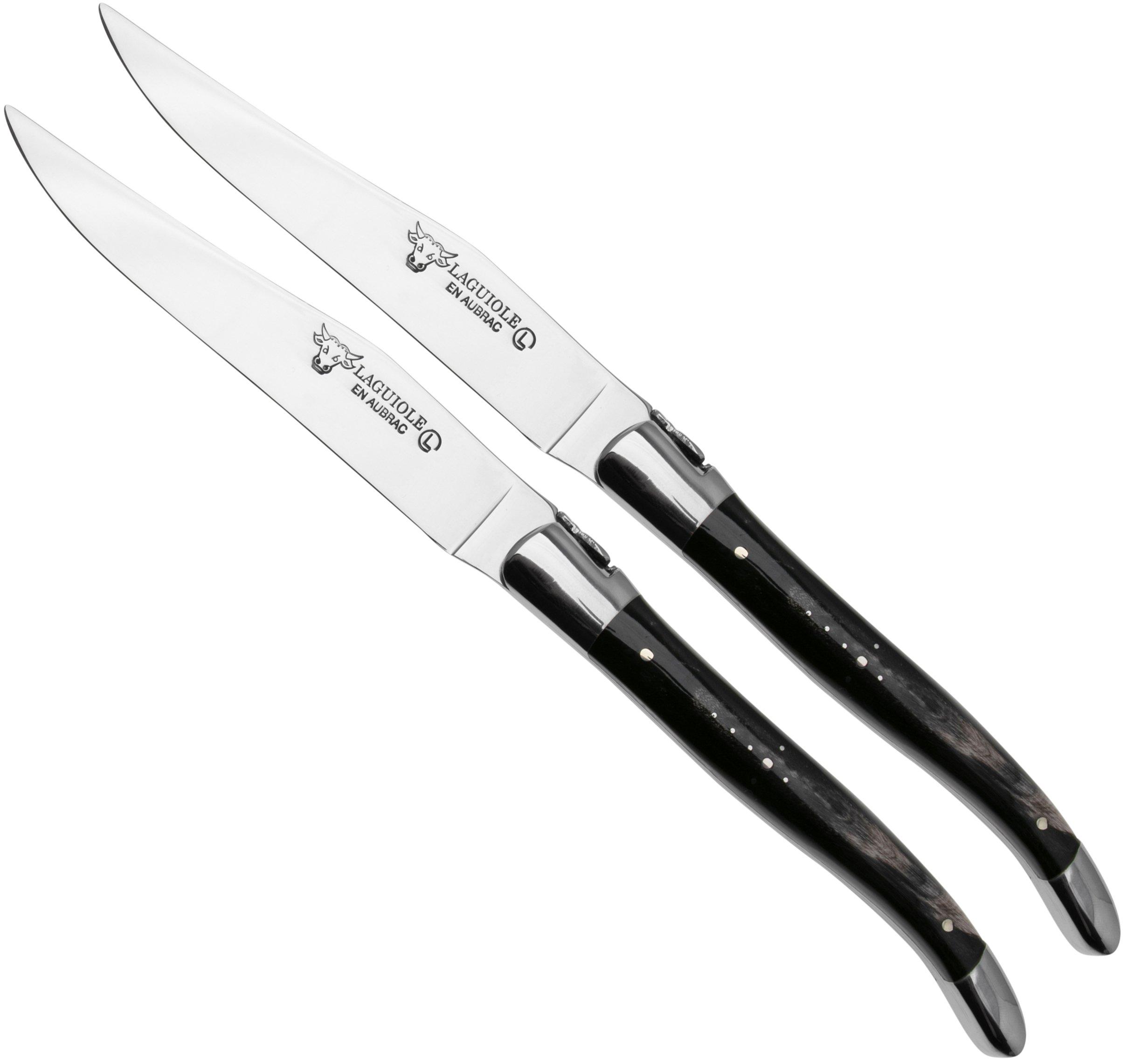 Laguiole en Aubrac, 22C99BUIH, 2-teiliges Steakmesserset, Büffelhorn